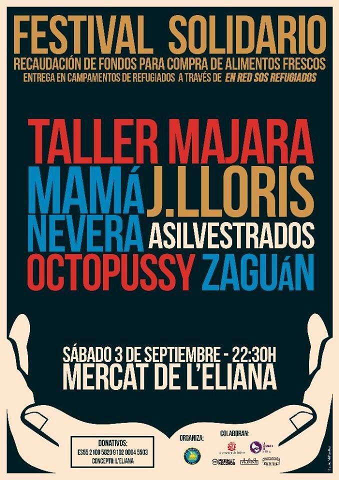 El próximo sábado, 3 de septiembre, a las 22:30 horas, en el espai Al Tall, sonará música en directo en un concierto que servirá para recoger fondos para la compra de alimentos frescos para los refugiados organizado por Red Sos Refugiados.