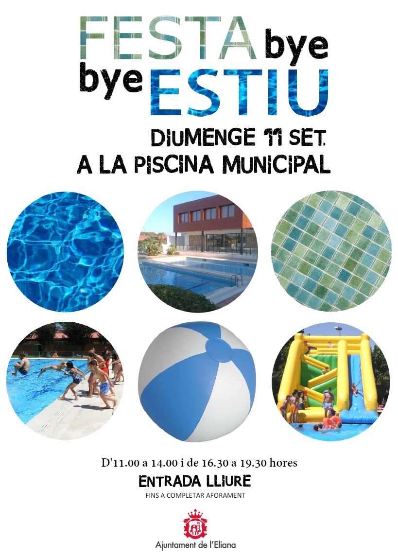 El próximo domingo, 11 de septiembre, la piscina municipal de l'Eliana se llenará de música, inflables de agua y diversión para todos los vecinos y vecinas en un fiesta que servirá para despedir el verano. La entrada será libre has completar el aforo y el horario será desde las 11:00 hasta las 14:00 h. y después de 16:30 a 19:30 h.