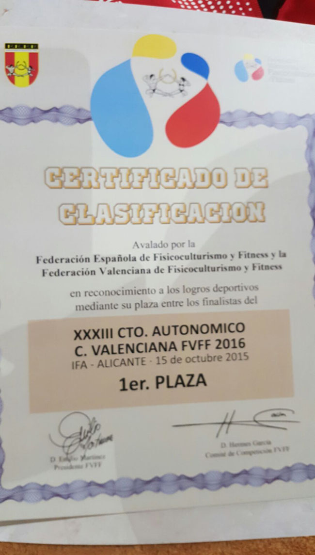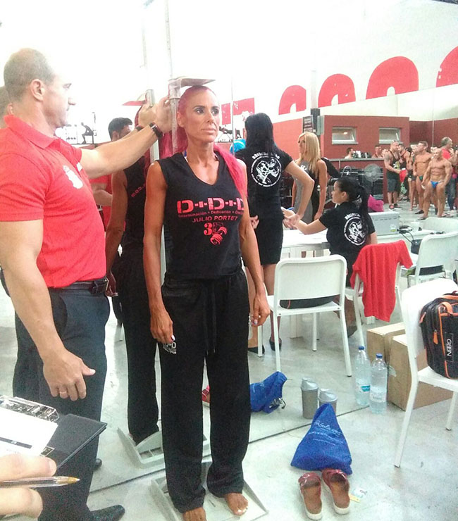 Entreno todos los días aquí, en un gimnasio local,  siguiendo las pautas que me da Julio Portest en su club, una vez a la semana. Allí también me ayuda con las poses mi entrenadora Enri López. No quiero dejar de nombrarles por todo el esfuerzo, dedicación y confianza que han depositado en mí. Julio fue el primero  que me dijo que sí,  que si podía, hace tres años y me ha guiado para poder conseguirlo. Estoy muy agradecida además de muy contenta.
