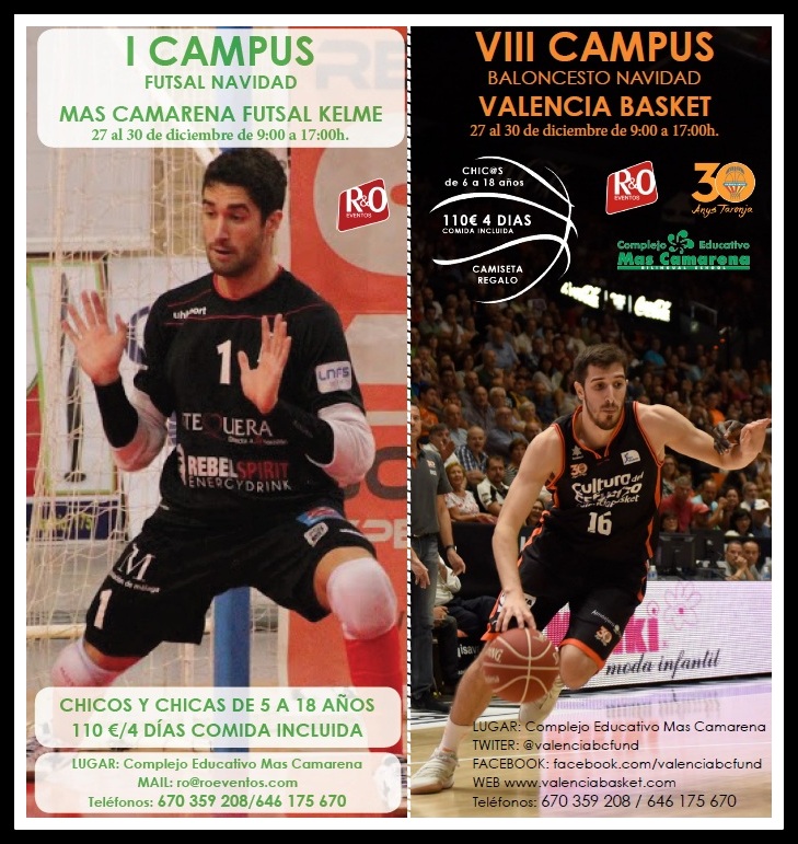 El centro realiza su primer Campus Deportivo de Fútbol Sala junto con profesionales de Kelme y para los amantes del baloncesto ofrece también un campus de la mano del Valencia Basket Club y que servirá para no perder el ritmo de entrenamiento estás navidades y mejorar con entrenadores especializados.