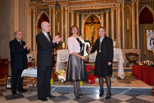 El acto continuó con unas palabras  de despedida de María José Monzo de Daríes, predecesora en el cargo, mientras el reverendo Salvador Valls Botella, consiliario del Altar de l’Eliana procedía  a bendecir las medallas acuñadas que se impusieron en primer lugar a la nueva Clavariesa Mayor y luego a los 17 nuevos vicentinos de l’Eliana.