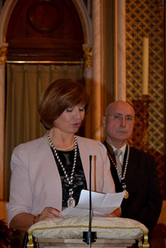 Por su parte, el secretario, Artur Melego Suay, continuó la ceremonia con la lectura del acta de nombramiento como la Clavariesa Mayor 2017, a Antonia Ten Montesinos, tras lo cual el presidente de la entidad local, Vicente Ortolà Gil, ofreció oficialmente  el cargo de Clavariesa Mayor 2017, a la vecina de l’Eliana.