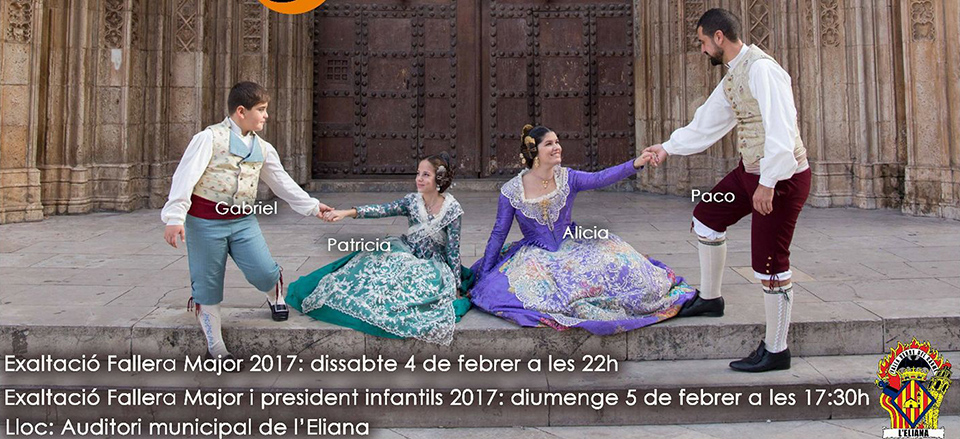 La presentació de la Fallera Major 2017, la senyoreta Alicia Desco Llopis serà el dissabte 4 de febrer, a partir de les 22:00 h. i el diumenge 5 de febrer, a les 17:30 h. tindrà lloc la de la Fallera Major Infantil, Patricia Úbeda i Conejeros al costat del President Infantil Gabriel Noguera i Sancho.