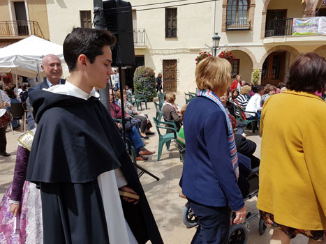 Antes tuvo lugar un vistoso pasacalle y la concentración de los niños actores,  que se desplazaron por el casco urbano,  acompañados por un ‘dolçainer i tabaleter ‘y el  grupo de ‘danses’ del Altar de Russafa, que se detuvo  en el Forn- Patissería Comes  , que guardaba  la imagen del Santo, para ser  entregada por su propietaria,  la Merche Faios, a la Clavariesa Mayor, Antonia Ten,  para que  ocupará su puesto de honor en el escenario.