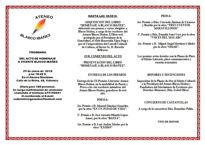 El escritor, poeta y periodista, Miguel Ángel Martínez, colaborador de www.vivaleliana.com, el periódico Ahora Paterna, el Festival Pinceladas Flamencas de l’Eliana, y ex columnista de los diarios Las Provincias, el Diario Decano de la Región y el Levante EMV, entre otros, recibirá este lunes 29 de enero el premio ‘Pluma de Plata’ en prosa, del Ateneo Blasco Ibañez de Valencia por su obra ‘OMAR’