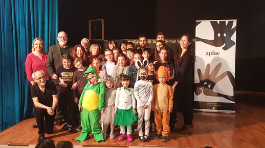 Los más pequeños junto a sus monitores, amenizaron con una divertida función sobre cada uno de los talleres formativos que imparte APLAE a lo largo del año, la tarde del martes 27, llenando el salón de actos de la casa de la Juventud. Durante la entretenida representación protagonizada por alumnos y monitores APLAE dio cuenta de las distintas facetas que acompañan el entorno teatral y la formación, como la danza, el esgrima, el canto y la voz, o el guiñol.