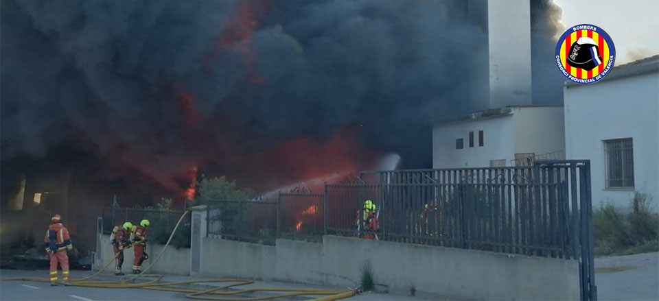Para extinguirlo ha sido necesario cuatro dotaciones de Bomberos de los parques de l'eliaan, Paterna, Chiva y Torrent y tres unidades del comando oficial. Al parecer el fuego comenzó en el exterior de la nave de reciclaje, en la que prendió el material, propagándose rápidamente a la segunda nave afectada.