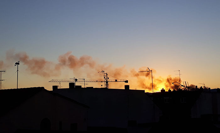 Sobre las 17.10h de esta tarde se ha desatado un incendio en el polígono industrial Enchuillagar de la vecina localidad de Vilamarxant. El fuego ha afectado, según informa Bomberos, a dos naves del recinto: una de reciclaje de materiales plásticos y otra de desguace.