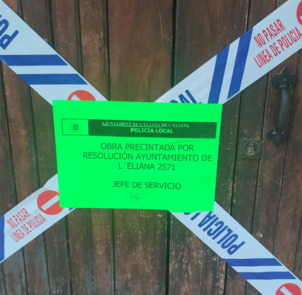 En su interior se estaban realizando obras que carecían de autorización, realizadas además en un edificio emblemático de nuestro pueblo que goza de la protección que le otorgan su inscripción en las Normas Subsidiarias de Planeamiento de 1999 y en el Catálogo de Bienes y Espacios Protegidos de l’Eliana.