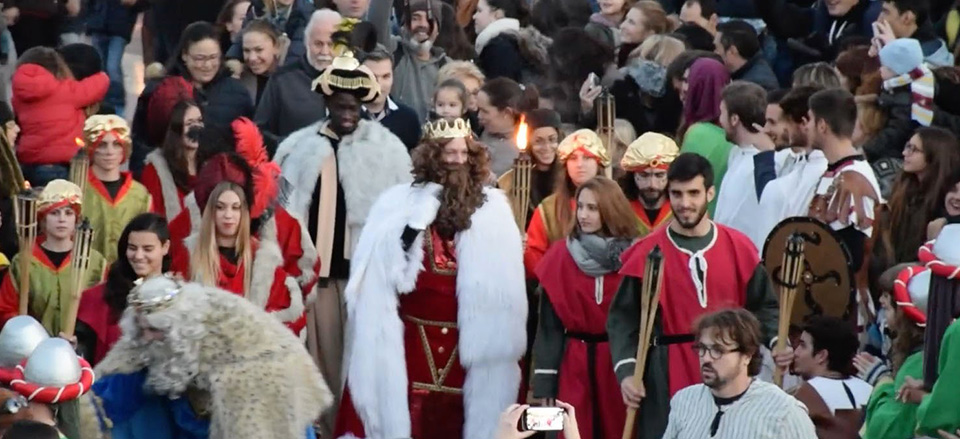 Melchor, Gaspar y Baltasar aparecieron en la Plaza de Europa montados en una Volkswagen Caravelle emocionando a los impacientes niños. VÍDEO.