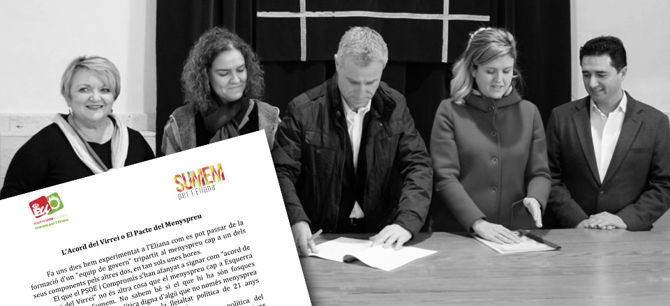 La coalición EU-Els Verds califica el acuerdo firmado entre Compromís y PSPV-PSOE como un desprecio a su grupo municipal. COMUNICADO.